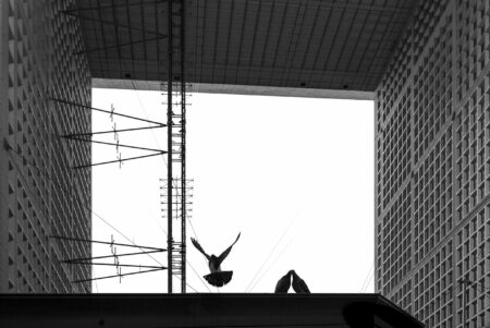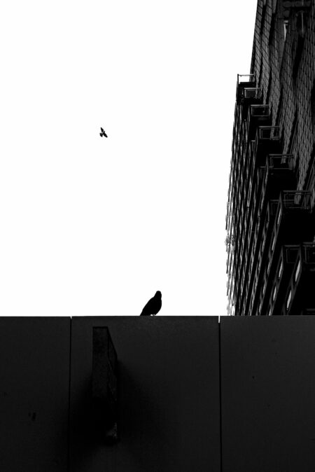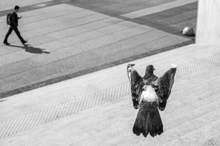 Mes photographies, toutes en noir et blanc, capturent également l’essence émotionnelle de la ville. Elles reflètent la dualité de cet environnement urbain, où la liberté et l’isolement coexistent harmonieusement. Chaque personnage solitaire, chaque oiseau en vol, incarne à sa manière les rêves et les aspirations de ceux qui peuplent ces rues anonymes.