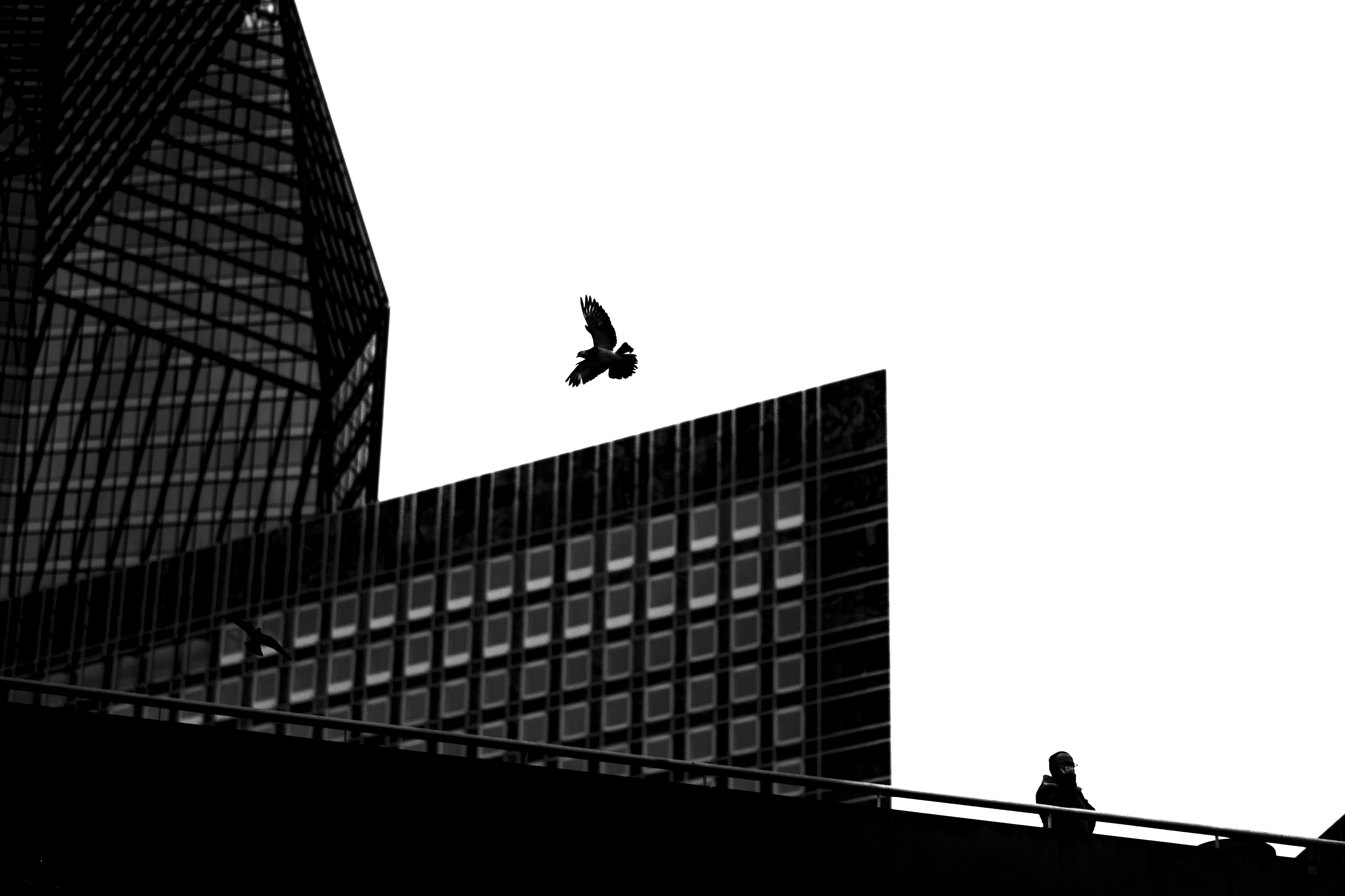 Mes photographies, toutes en noir et blanc, capturent également l’essence émotionnelle de la ville. Elles reflètent la dualité de cet environnement urbain, où la liberté et l’isolement coexistent harmonieusement. Chaque personnage solitaire, chaque oiseau en vol, incarne à sa manière les rêves et les aspirations de ceux qui peuplent ces rues anonymes.